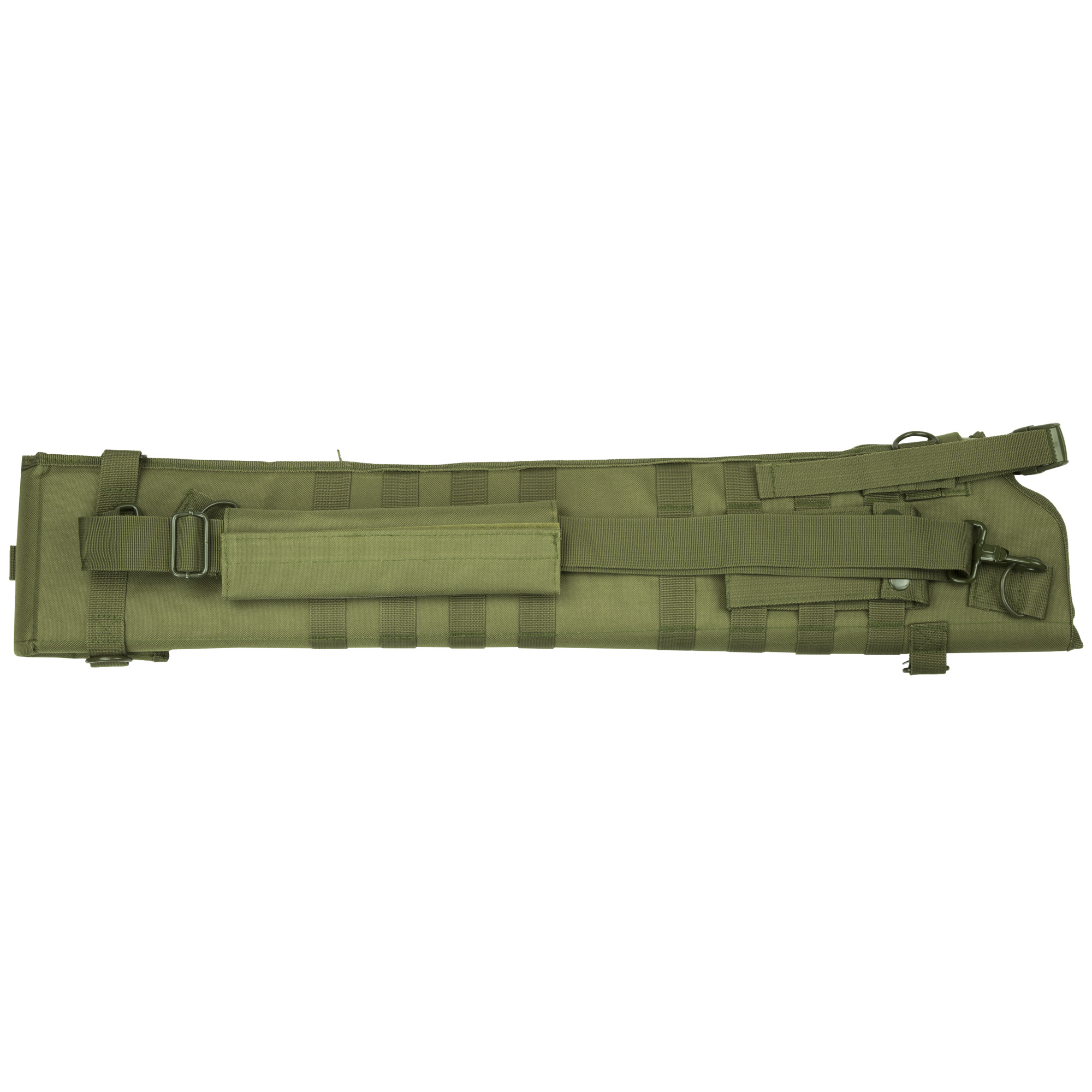The Tactical Shotgun Scabbard is designed for an easy, comfortable, and secure way of carrying a shotgun over the shoulder or for modular mounting onto MOLLE compatible gear.